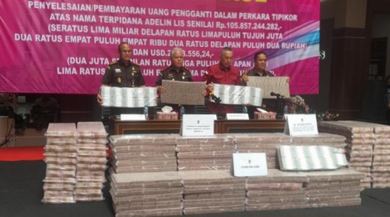 Tumpukan uang itu dalam bentuk rupiah dan dolar, diperlihatkan oleh Kejaksaan Tinggi Sumatera Utara (Kejatisu) di ruang aula. Kepala Kejatisu, Harli Siregar, mengatakan jika uang pengganti ini sesuai dengan putusan Mahkamah Agung nomor: 68K/Pidsus/2008 tanggal 31 Juli 2008. Dalam putusan itu, Adelin Lis dihukum 10 tahun penjara dan membayar uang pengganti sejumlah Rp119.802.393.040 dan US$ 2.938.556,24.