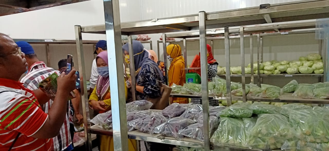 Pihak e-Warung dari Serdangbedagai juga berkesempatan melihat langsung berbagai jenis produk sayur-sayuran yang hasil kelolaan sayur online Kamtibmas digudangnya/foto : ist