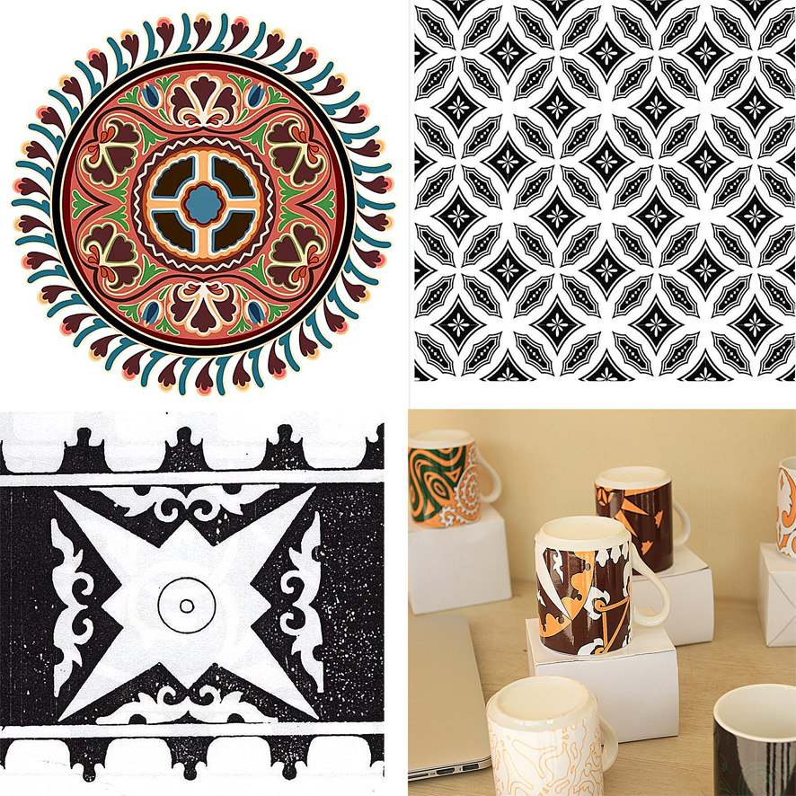 Motif ornamen bunga komposisi bulat berasal dari Uzbekistan, Turki, India, Persia, dan Asia Tenggara.