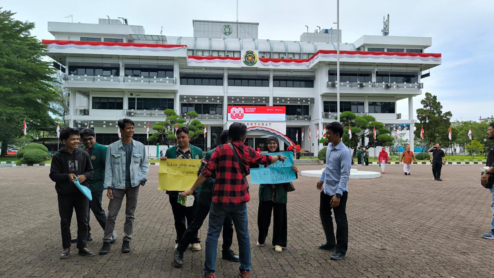 “Tidak dibolehkan kami berorasi dari pihak keamanan Kampus USU. Bahkan, kami foto pakai poster yang berisikan kritikan terhadap Rektor USU, juga tidak diperbolehkan,” cerita Jalaluddin Pulungan kepada awak media melalui gawai, Minggu (17/8/2025).