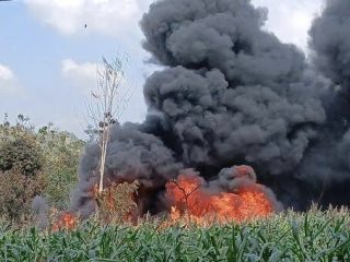 Api kemudian menyambar ke bangunan lain, hingga menimbulkan asap pekat yang membubung tinggi.