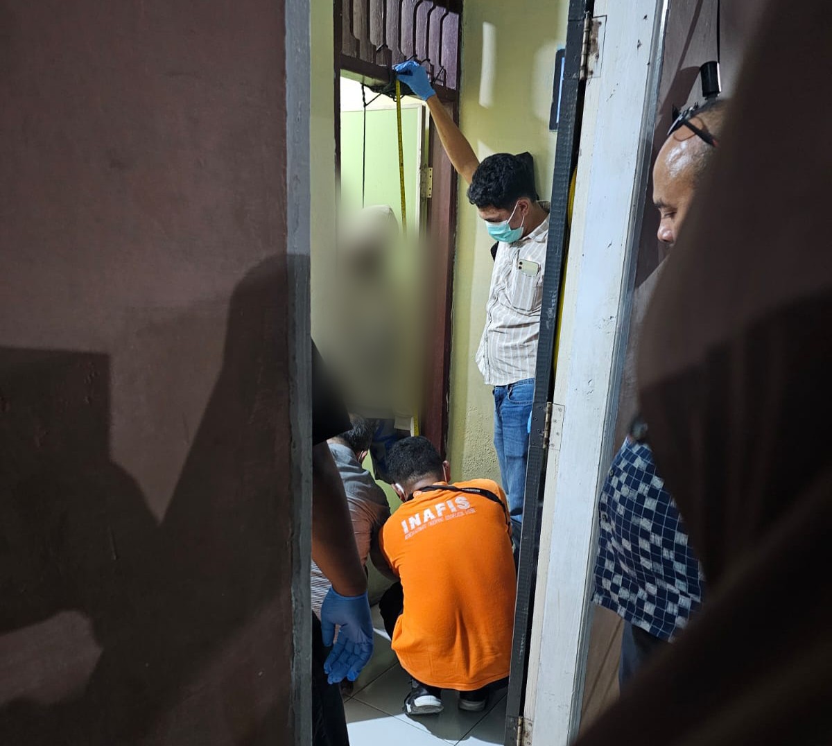 Tim Inafis Polresta Deliserdang melakukan olah TKP terkait tewasnya seorang mahasiswa dengan cara gantung diri di kamar kostnya/foto: ist BICARAINDONESIA-Deliserdang: Warga Jalan Thamrin, Kecamatan Lubukpakam, Kabupaten Deliserdang, Sumatera Utara, digegerkan dengan tewasnya seorang pria penghuni kamar kost pada Selasa malam (22/7/2025) sekitar pukul 19.30 WIB.