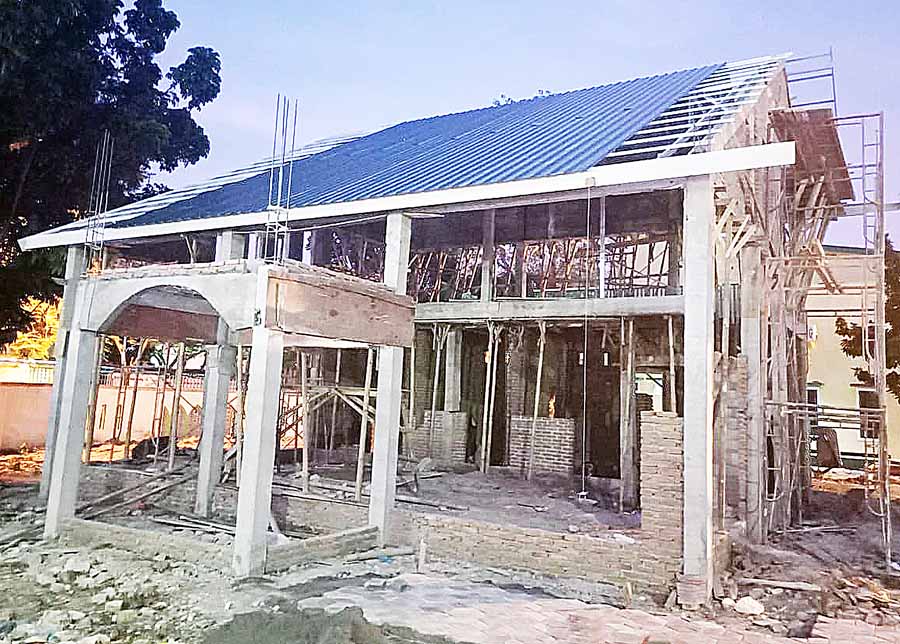 Diduga untuk mengelabui, bangunan Food Court VIP di Kampus I UIN Sumut Jalan Sutomo Ujung Medan, yang belum selesai, sengaja dipasang atap seng. / Ist