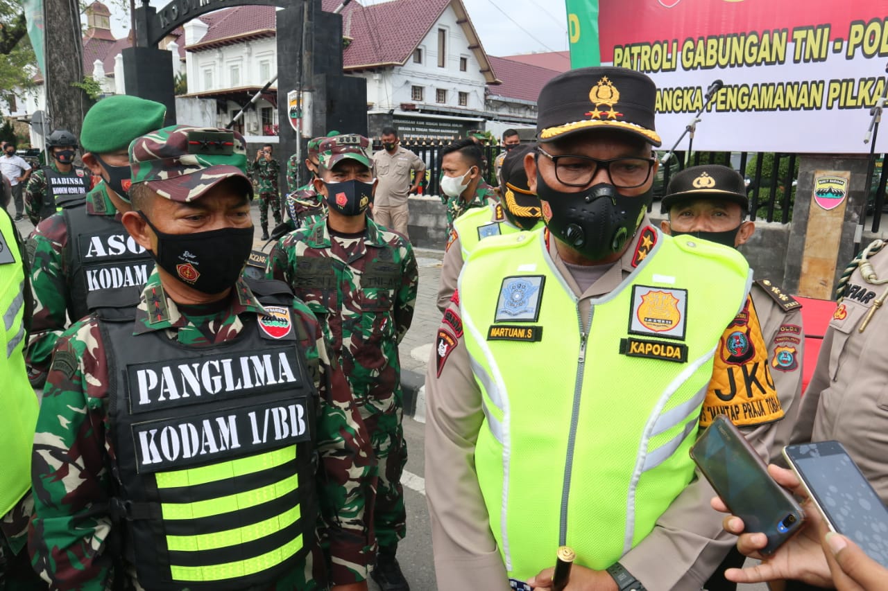 Sebelum memulai Patroli Kapolda Sumut menyampaikan tujuan di laksanakannya patroli gabungan TNI dan Polri untuk memberikan keamanan dan ketertiban situasi kamtibmas dalam menyongsong pesta demokrasi yang akan di laksanakan di 23 kabupaten dan kota di Sumut.