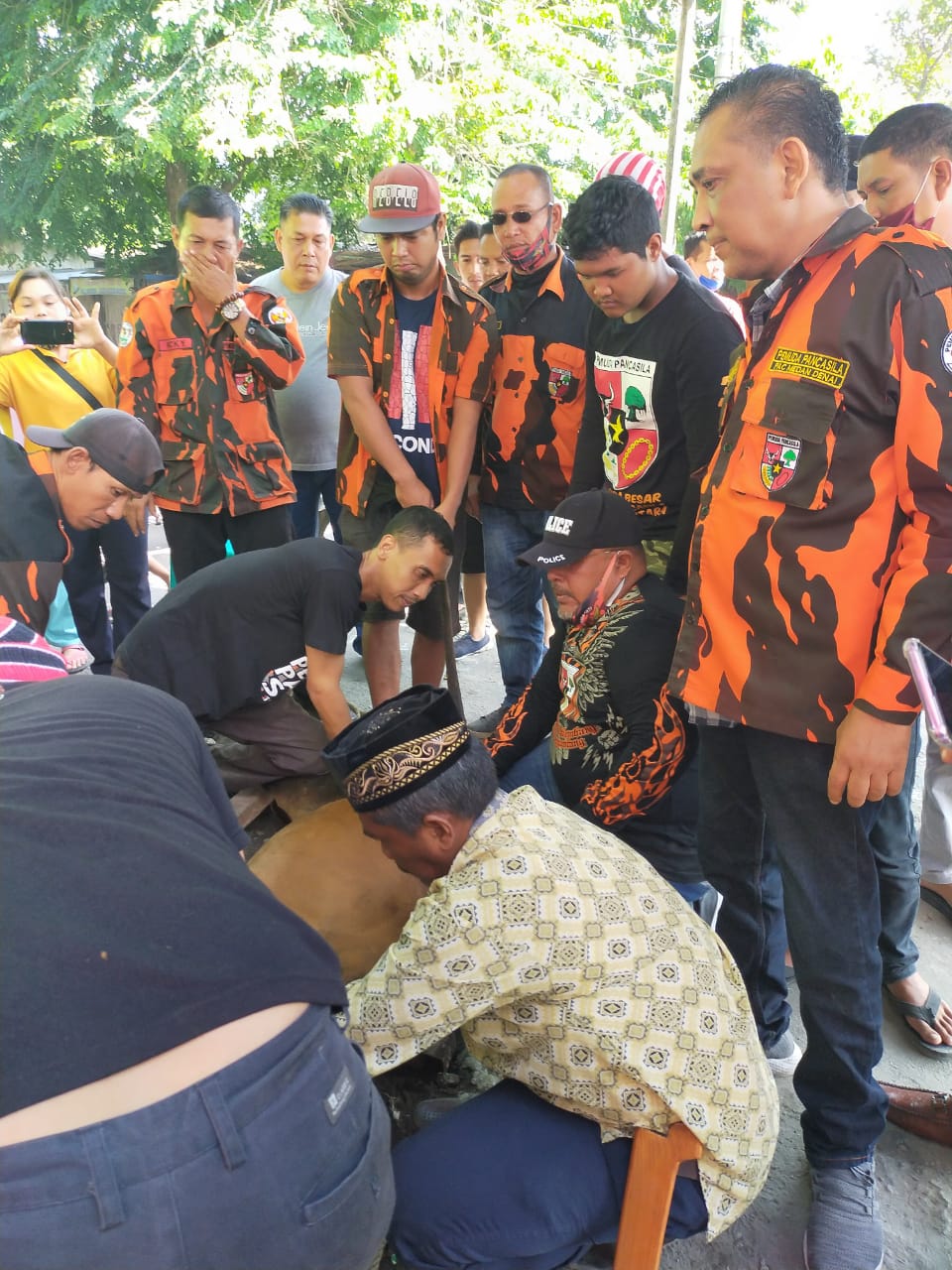 BICARAINDONESIA-Medan : Pengurus Anak Cabang Pemuda Pancasila (PAC PP) Kecamatan Medan Denai melaksanakan pemotongan hewan kurban, berupa 2 ekor sapi dan 1 ekor kambing, di sekretariat Jalan Denai, Sabtu (1/8/2020).
