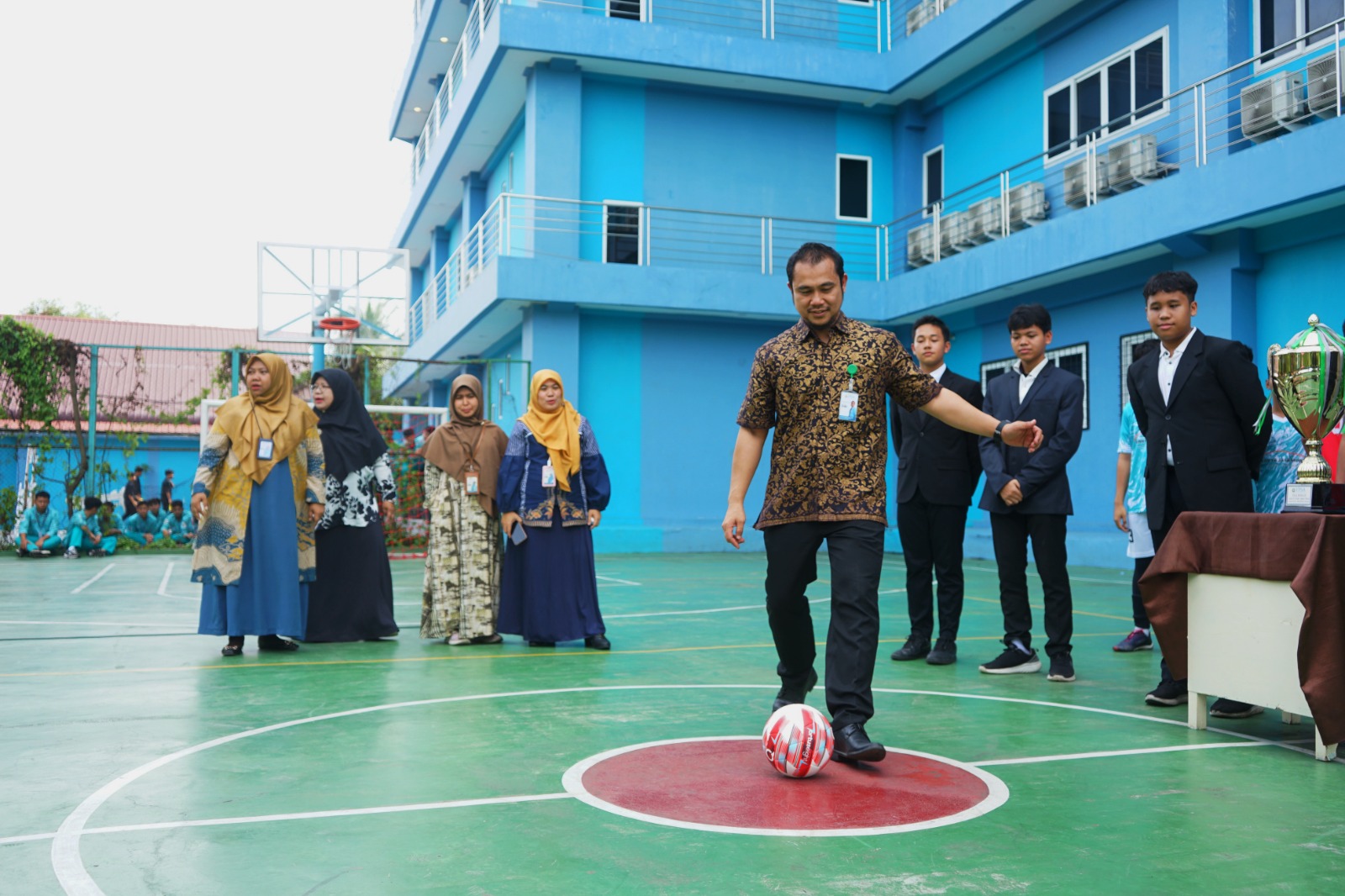 Wakil Ketua Harian YPSA Zulfadhli A. Raz melakukan tendangan pertama sebagai tanda dibukanya SPL 2024/foto: ist BICARAINDONESIA-Medan: Shafiyyatul Premier League (SPL) yang digelar SMA Shafiyyatul Amaliyyah resmi digelar. Pembukaan kompetisi ini ditandai dengan tendangan bola ke gawang oleh Wakil Ketua Harian Yayasan Pendidikan Shafiyyatul Amaliyyah (YPSA) Zulfadhli A. Raz di lapangan Futsal Sport Centre YPSA, Selasa (12/11/2024).