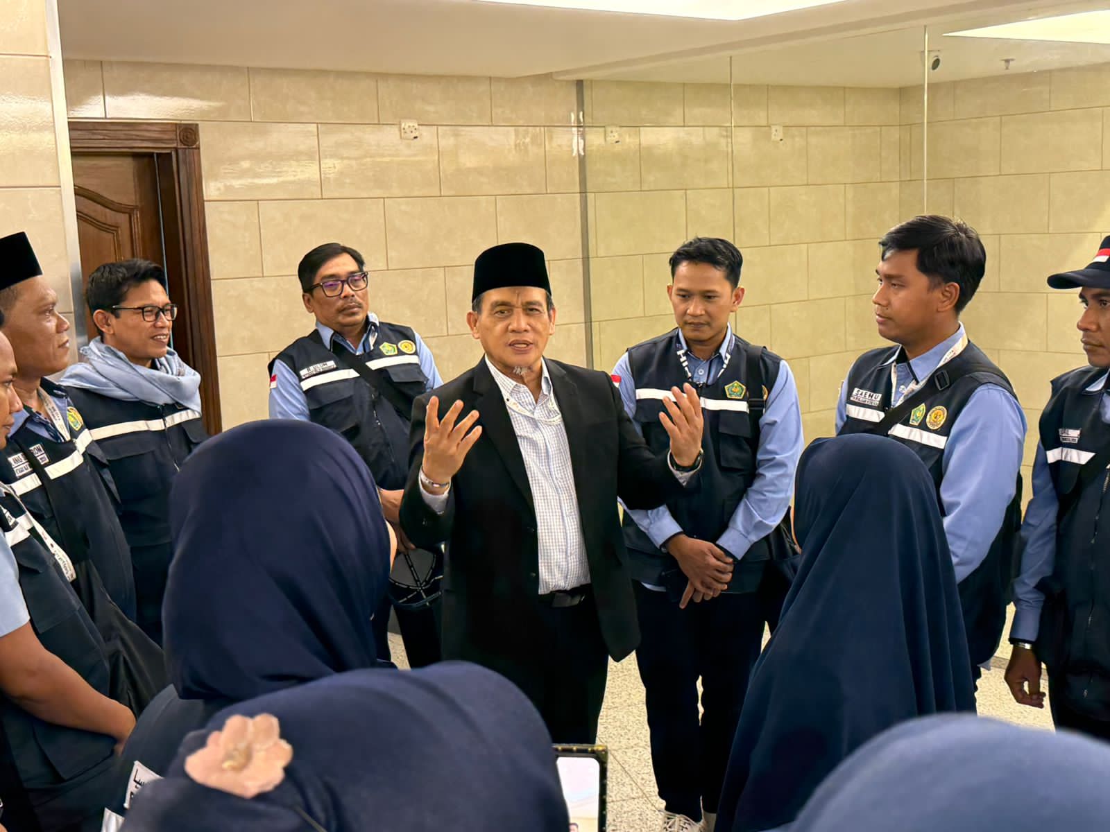 Wamenag Romo HR Muhammad Syafi’i berbincang dengan petugas PPIH/foto : ist BICARAINDONESIA-Makkah: Wakil Menteri Agama (Wamenag) Romo HR Muhammad Syafi’i menyampaikan bahwa Presiden Prabowo Subianto sangat memikirkan tentang kenyamanan jemaah haji Indonesia di masa mendatang.