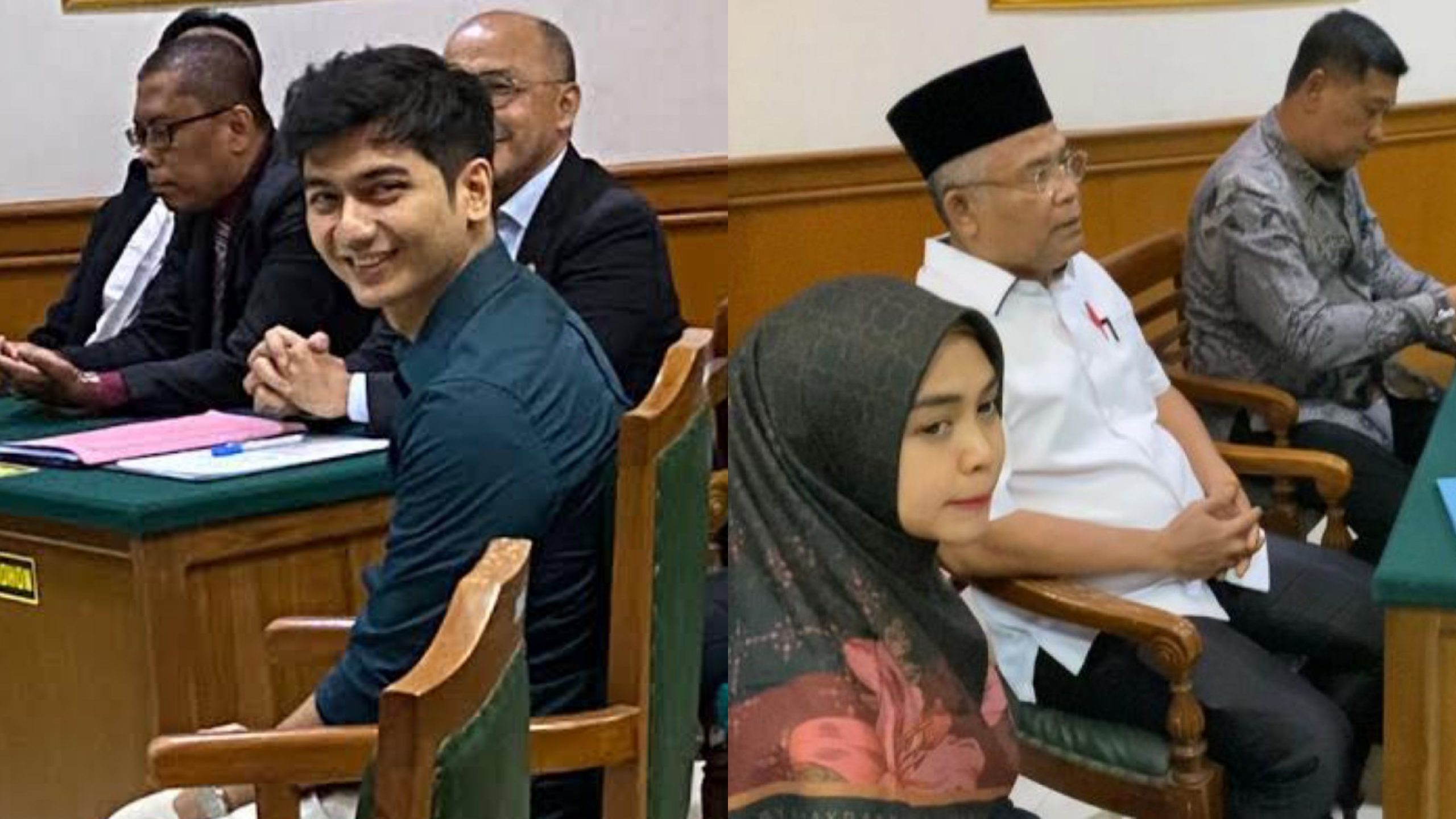 Kemudian, Ria Ricis langsung menyusul masuk ke ruang sidang. Ria Ricis terlihat mengenakan kerudung dan gamis berwarna hitam dengan motif bunga berwarna merah. Didampingi oleh pengacatanya, Ricis terlihat duduk si sisi kiri ruang sidang.