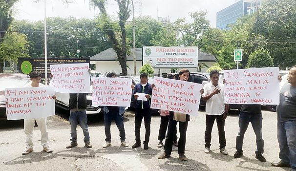 Koordinator aksi, Surya, menjelaskan tujuan kedatangan pihaknya ke PN Medan, untuk meminta ditetapkannya tersangka lain dalam kasus pemerasan yang menjerat Azlansyah Hasibuan. “Jadi, aksi ini sebagai bentuk keresahan kita atas kasus (pemerasan) ini. Jadi kita menilai bahwa kasus ini tidak hanya sampai pada Azlansyah (Hasibuan),” ucapnya.