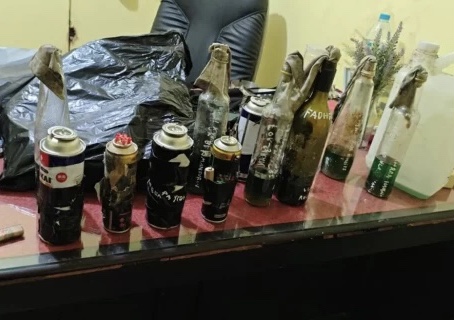Mayndra menyatakan, dalam aksi tersebut, ditemukan sejumlah barang bukti di antaranya, lima buah gas portable yang bagian sampingnya direkatkan petasan, paku dan pisau. Lalu, enam buah botol berisi bahan bakar minyak dan sumbu kain atau bom molotov.