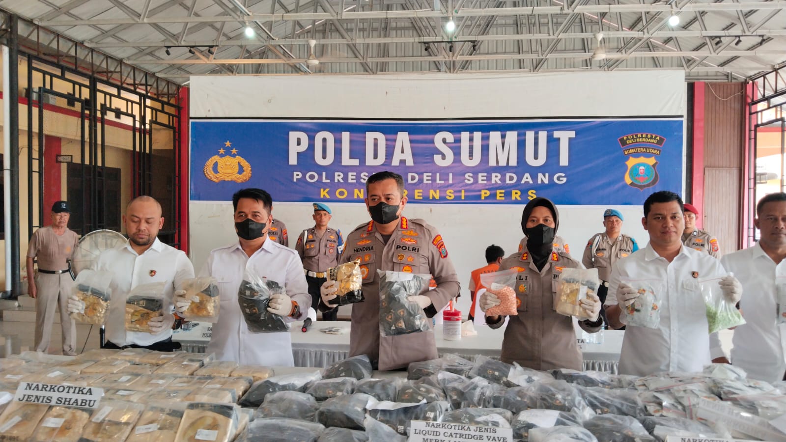 Dalam keterangannya, Hendria memaparkan, ada beberapa jenis narkotika yang diamankan, diantaranya  53 kilogram sabu-sabu yang dibungkus plastik warna gold gambar durian merek Freeso -dried durien, narkotika dalam bentuk Liquid Catridge Vape merek Lamborgini sebanyak 2.982 pcs, dan Vape merek Ninja sebanyak 267 pcs.