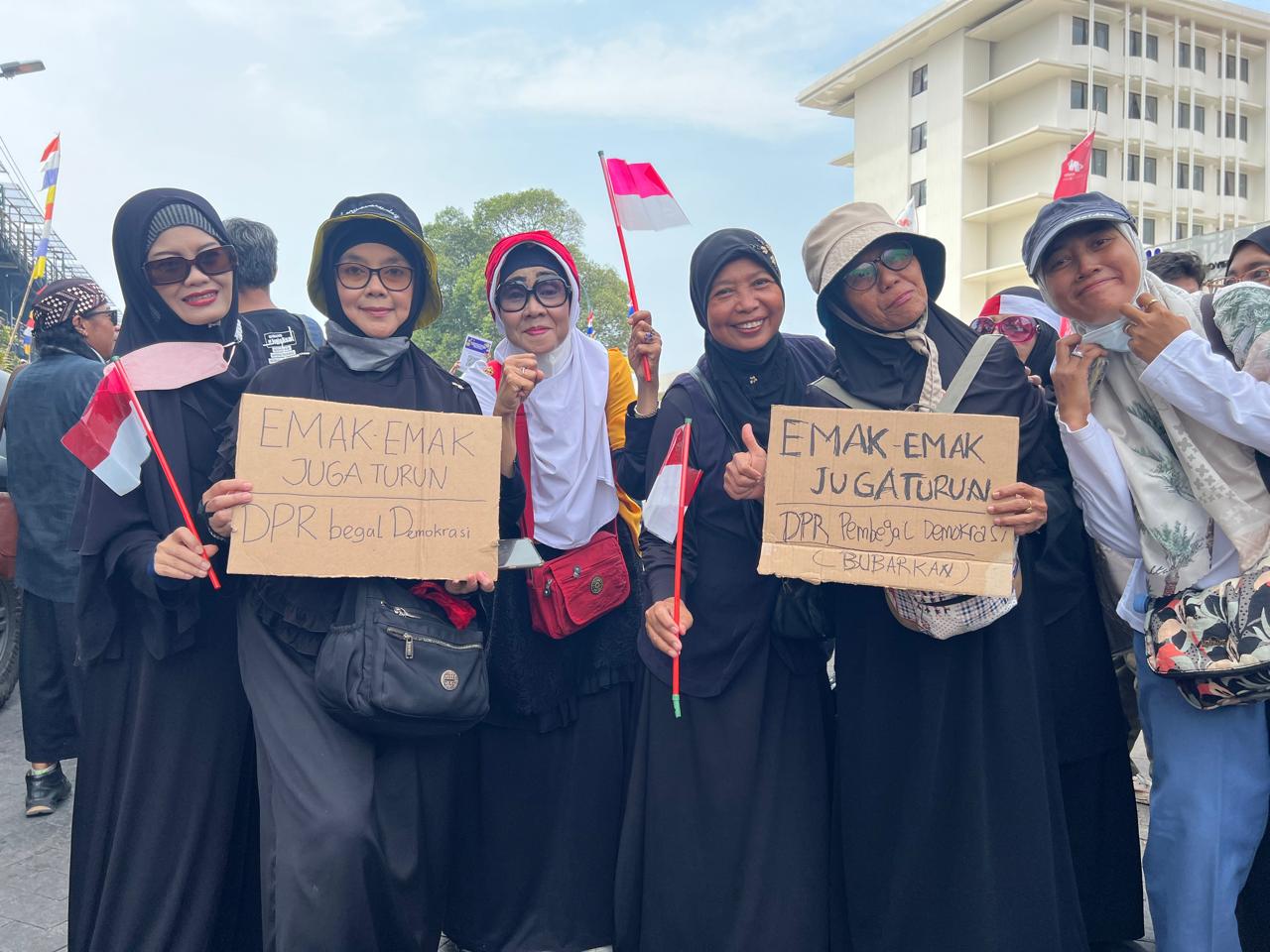 Ibu-ibu pengajian di Yogyakarta turun turun ke jalan mengikuti aksi tolak Revisi UU Pilkada/foto : yudis
