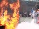 Srikandi PLN Lisa Simorangkir (Team Leader K3L dan Kam) tampak beraksi mengendalikan api dengan sistem proteksi kebakaran dalam kegiatan simulasi/foto : ist
