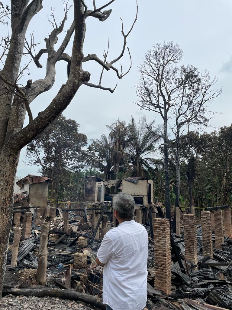 Anggota F-PDIP DPRD Sumut Sugianto Makmur melihat kondisi rumah warga di Tanjungpura, Langkat yang hangus usai diamuk di jago merah/foto : ist LBICARAINDONESIA-Langkat : Sebagai bentuk keprihatinan Anggota DPRD Sumatera Utara, Ir Sugianto Makmur, mengunjungi masyarakat para korban bencana kebakaran di Jalan Tepian Benteng Bioskop Deli, Tanjungpura, Kabupaten Langkat akibat amuk si jago merah yang terjadi Jumat dinihari (2/6/2023) pukul 01.00 WIB.
