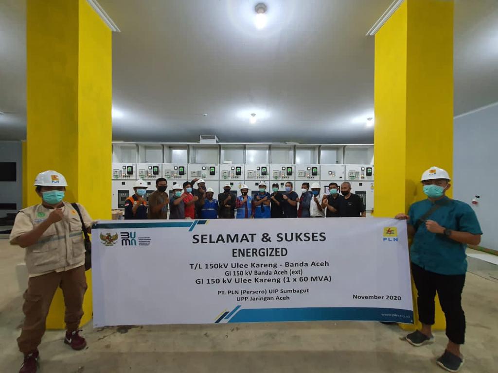 Bahkan terhitung mulai Jum’at, 20 November 2020 persisnya pada pukul 21.30 WIB, SUTT 150 kV bserta GI Ulee Kareng dengan trafo daya 1×60 MVA tersebut resmi ‘energize’.