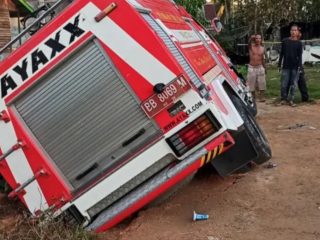 Berupaya Padamkan Amuk Si Jago Merah, 2 Armada Damkar Pemkab Tapteng Malah Terperosok ke Parit