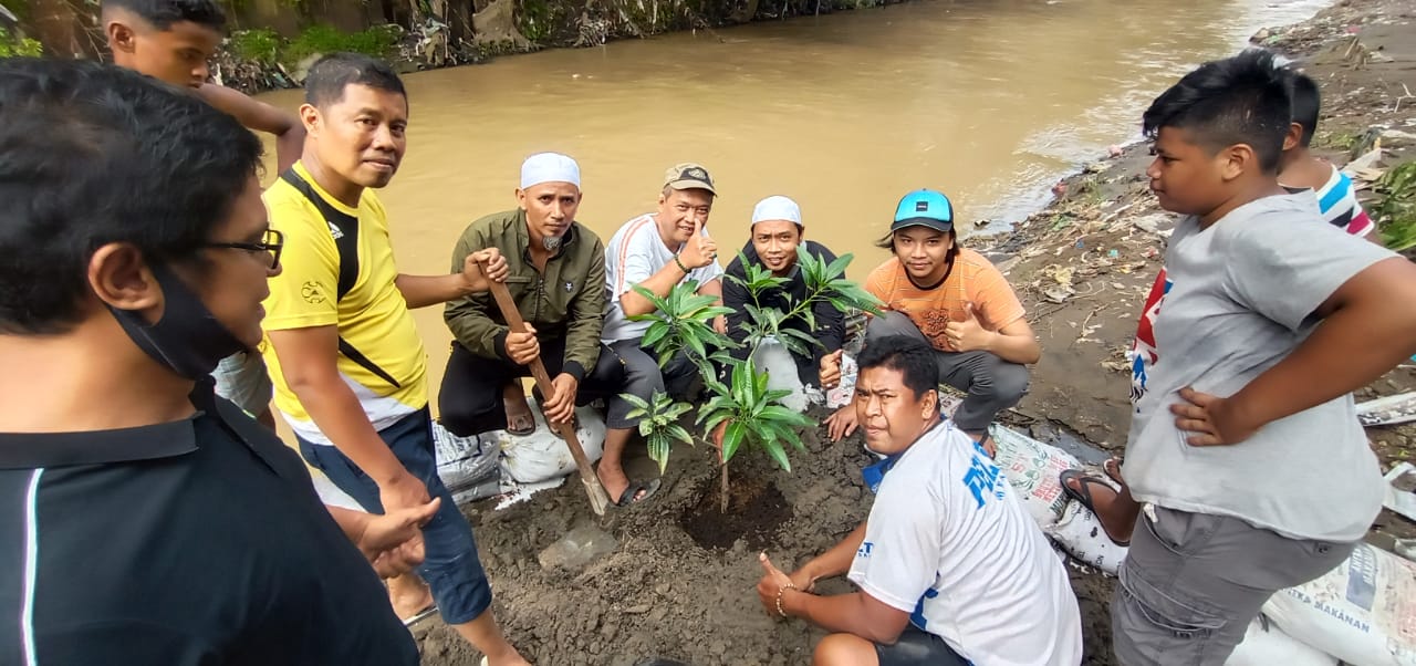 Aksi tanam pohon warga Kampung Sejahtera di tepian Sungai Babura/foto : ist BICARAINDONESIA-Medan : Pasca banjir yang melanda pemukiman padat penduduk di Jl. KH Zainul Arifin, Kel. Petisah Tengah, Kec. Medan Petisah, warga sekitar tak mau berpangku tangan.