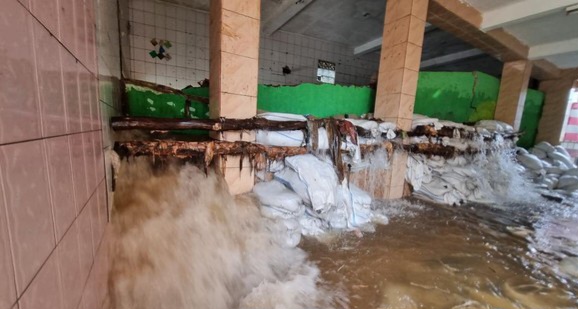 Berdasarkan pantauan, pagi tadi banjir masih sekitar 20-30 sentimeter. Banjir ini disebabkan oleh luapan air dari tanggul yang jebol.
