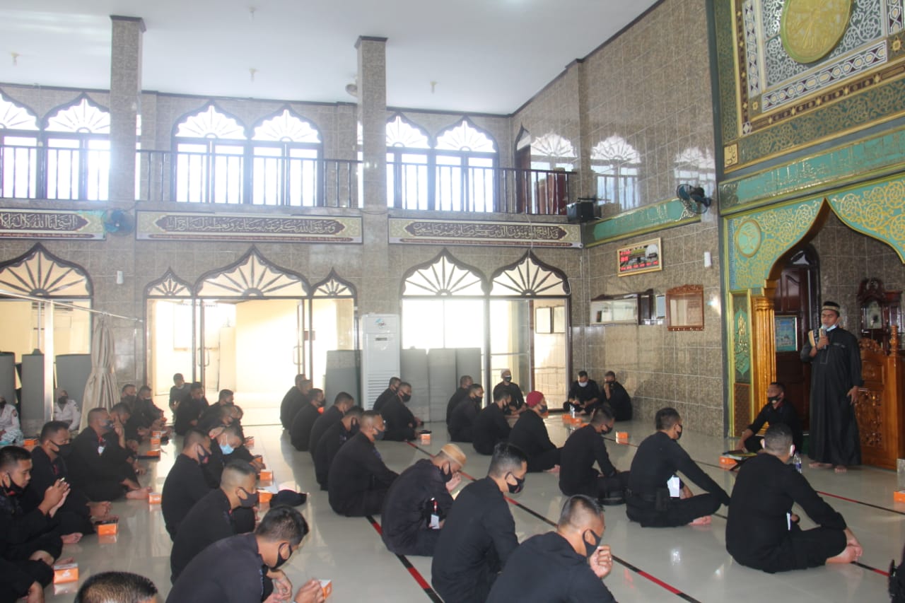 Suasana kegiatan Maulid Nabi Muhammad SAW di Makosat Brimob Poldasu/foto : ist BICARAINDONESIA-Medan : Sebagai salahsatu cara mengingat dan meneladani sifat Rasulullah, Satuan Brimob Polda Sumut, menggelar perayaan Maulid Nabi Muhammad SAW di Masjid Nurul Huda Makosat Brimob Polda Sumut, Jl. KH Wahid Hasyim No. 3i Medan, Kamis (5/11/2020).