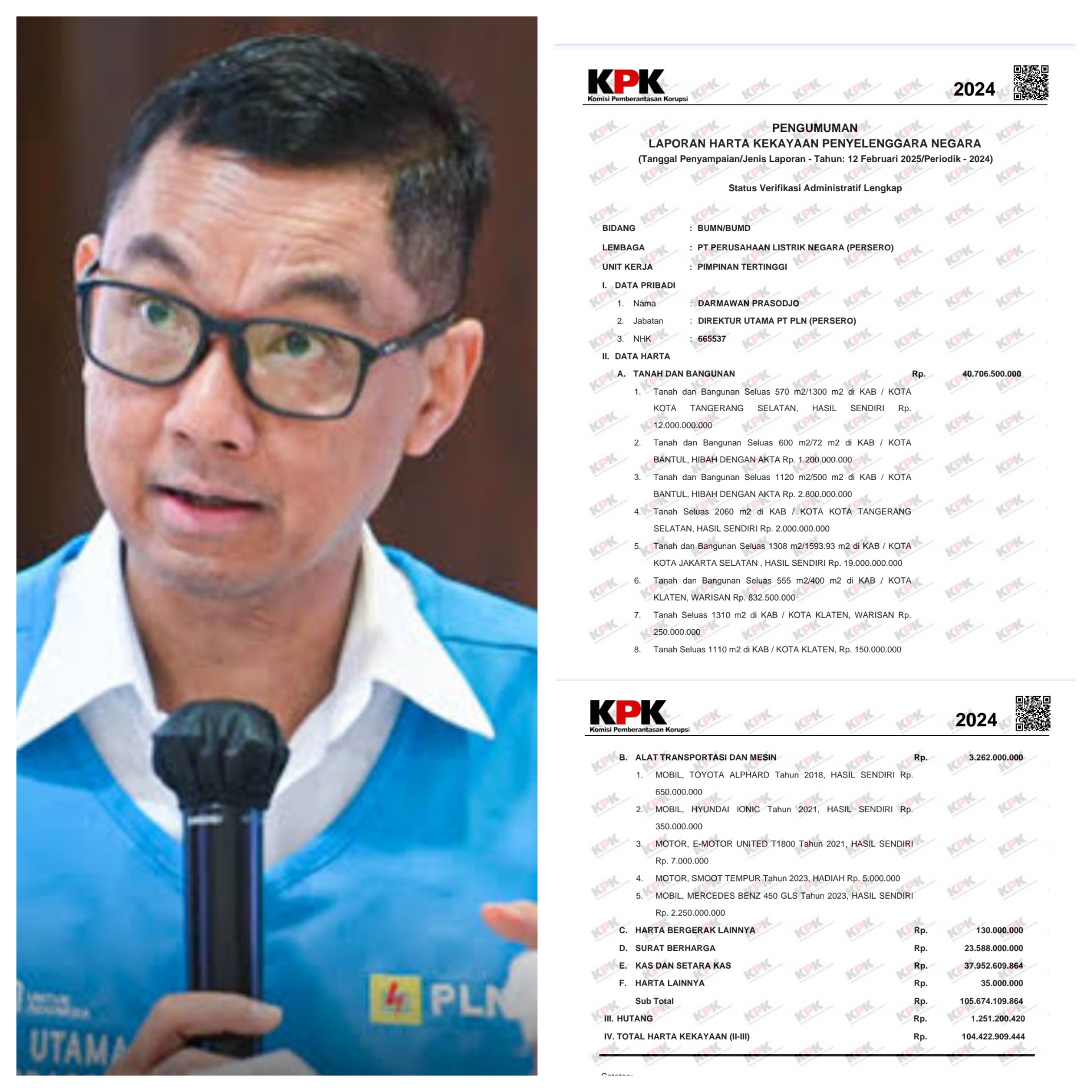Dan kini, berdasarkan LHKPN terakhir pada tahun 2024, kekayaan Darmo tembus angka 100 miliar, atau totalnya sebesar Rp104.422.909.444. Jumlah yang sangat kontras di saat perusahaan yang momonopoli sistem kelistrikan di tanah air itu terus tergerus kerugian.