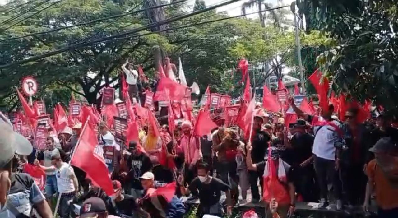 Aksi ratusan petani penggarap gelar aksi di Kantah Kabupaten Bogor 1/foto : ist BICARAINDONESIA-Bogor : Kantor Pertanahan (Kantah) Kabupaten Bogor 1 atau BPN Cibinong, digeruduk ratusan petani penggarap Kecamatan Nanggung, Kabupaten Bogor, Senin (6/5/2024).