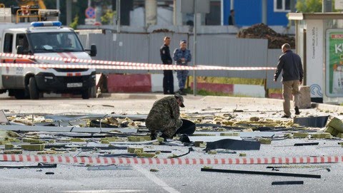 Satu drone lainnya, yang disebut sebagai ‘tipe helikopter’, terjatuh di area pemakaman di sebuah kota di luar Moskow. Drone itu tidak membawa peledak apa pun.