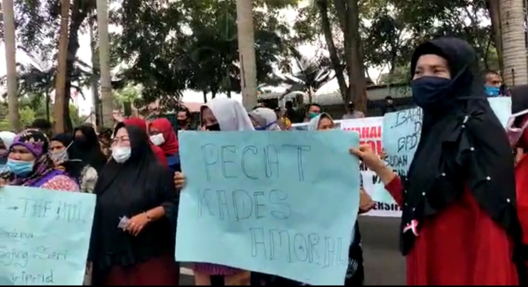 Keresahan atas kasus asusial si Kades juga dilontarkan kalangan pendemo emak-emak.