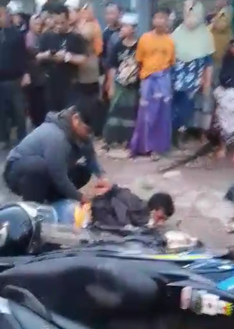 Dari keterangan warga yang melihat kejadian itu, pemuda yang berpakaian sipil itu terlihat langsung menghentikan laju sepeda motor yang dikendarai pelaku. Tampak pula pelaku membawa ransel di punggungnya.
