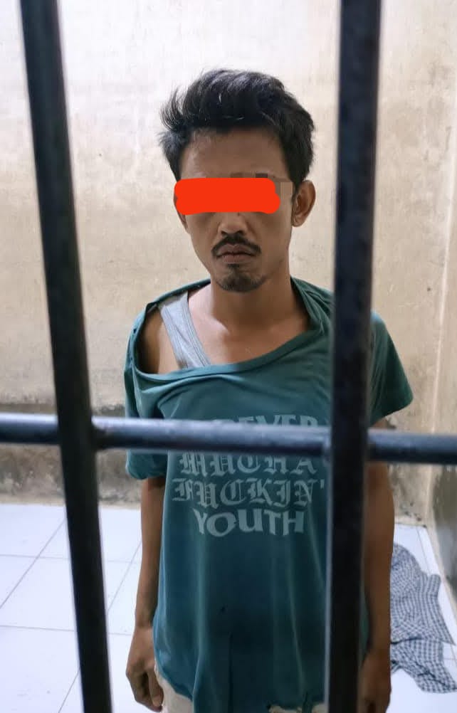 Tersangka SNR alias Syaiful usai dijeslbloskan ke sel Polres Labuhanbatu/foto: ist BICARAINDONESIA-Labuhanbatu : Aksi bang jago yang dipertontonkan SNR alias Syaiful yang memukuli bagian tubuh dan wajah istrinya berinisial H (30) pada Rabu, 8 Januari 2025 lalu, akhirnya bergulir ke ranah hukum.