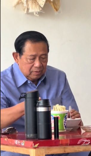 Baru-baru ini sang putra, Agus Yudohoyono atau disapa AHY ikut membagikan momen sederhana sang ayah saat makan siang di warung pinggir jalan. Lewat akun TikToknya @agusyudhoyonoahy (27/1/2024), tampak SBY hanya memesan satu cup mie instan merek Pop Mie rasa soto.