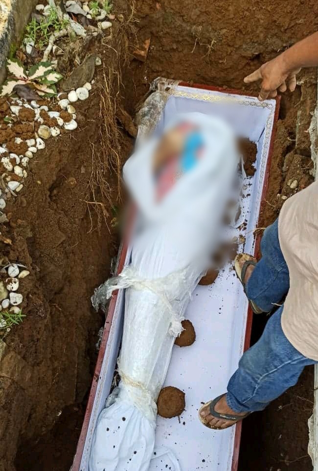 Postingan foto pemakaman jenazah yang dklaim pasien Covid-19 tampak masih mengenakan daster/foto : fb BICARAINDONESIA-Medan : Pandemi Covid-19 yang terus menjadi momok di dalam negeri sejak 4 bulan terakhir, tak bisa dipungkiri telah membuat tatanan kehidupan di Indonesia amburadul.