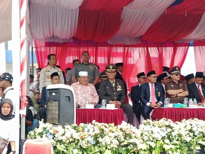 H.Khoir, ayah Wabup Madina yang ikut duduk di tribun forkopimda saat karnaval HUT ke 78 RI nenjadi sorotan/foto : ist BICARAINDONESIA-Madina: Sosok seorang pria tua mengenakan batik dan tutup kepala jenis lobe menjadi pusat perhatian dan sorotan masyarakat yang hadir memeriahkan karnaval HUT ke 78 RI di Kabupaten Mandailingnatal (Madina), Sumatera Utara.