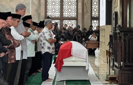 BICARAINDONESIA-Jakarta : Jenazah Wapres RI ke-6 Try Sutrisno disalatkan di Masjid Sunda Kelapa, Jakarta Pusat. Salat jenazah dimulai pada pukul 12.27 WIB, Senin (2/3/2026).